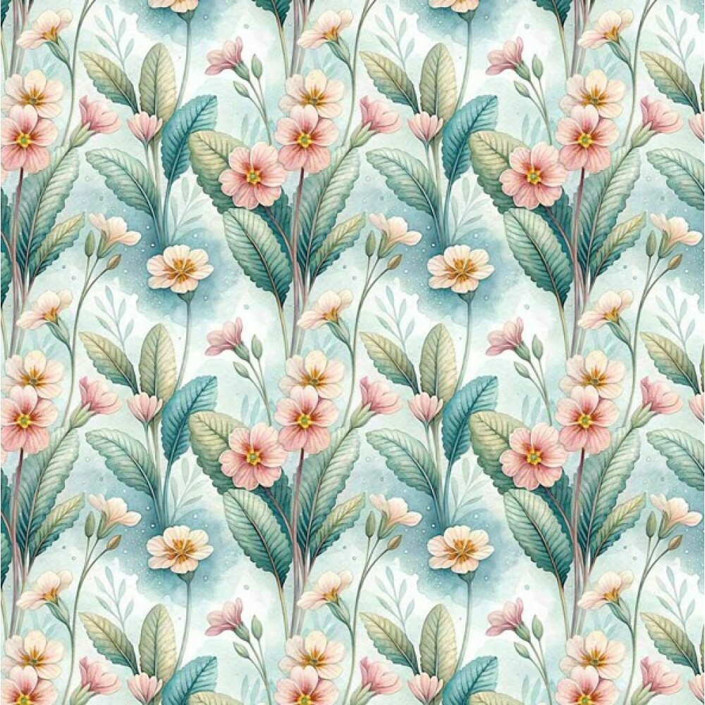 FV26 - TRICOL. COLEÇÃO FLORICULTURA - FLORAL COM FOLHAS - 100% ALGODÃO