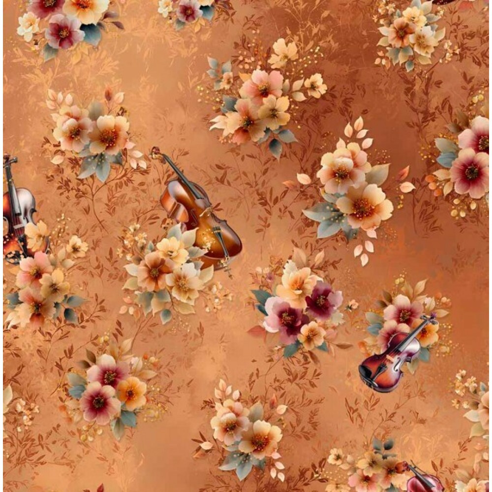 FV26 - TRICOL. COLEÇÃO SINFONIA FLORAL POR JOANA BORGA - FLORAL COM INSTRUMENTOS - 100% ALGODÃO
