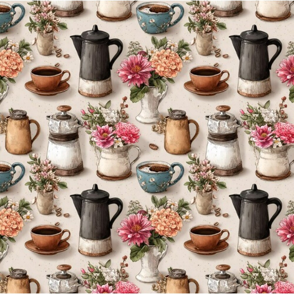 MR26 - TRICOL. COLEÇÃO CAFÉ COM CANELA - BULES E XÍCARAS - 100% ALGODÃO - A1154-001