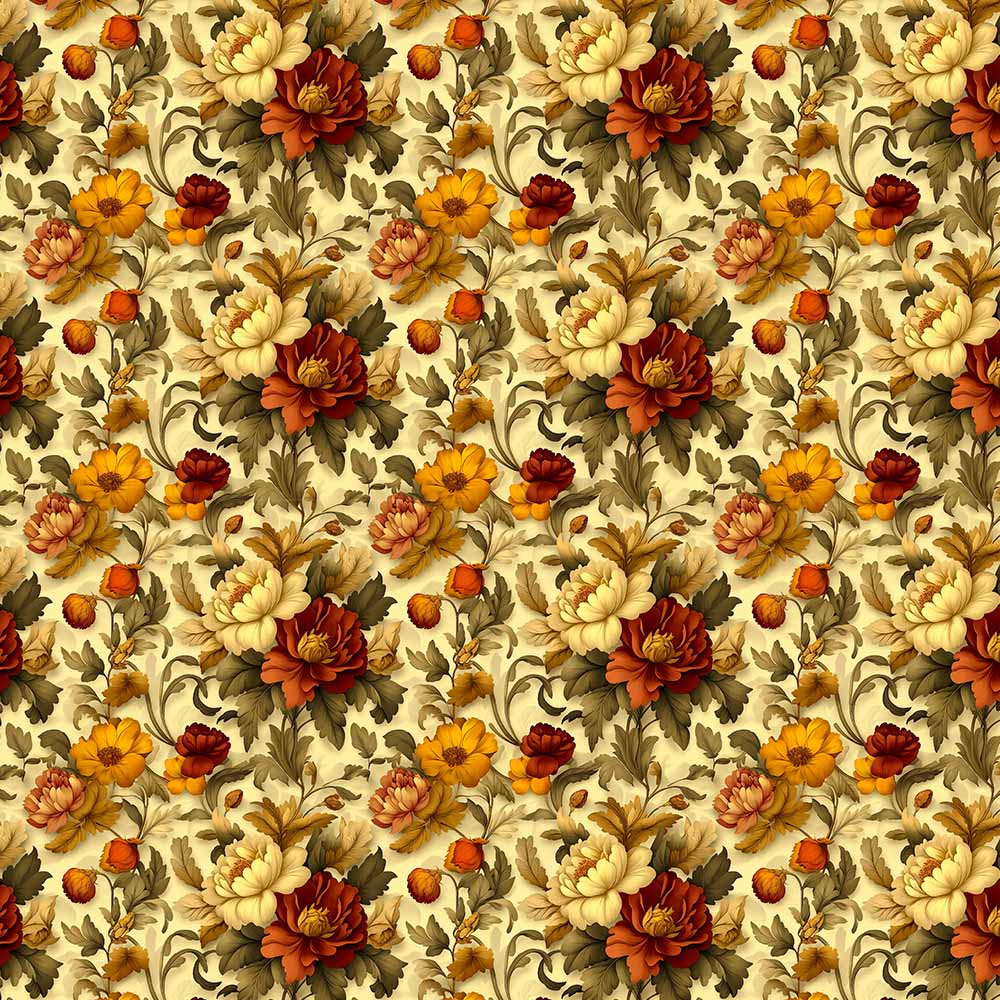 AB26 - TRICOL. COLEÇÃO GOLDEN GROVE - FLORAL GRANDE FUNDO BEGE - 100% ALGODÃO - A2765-001