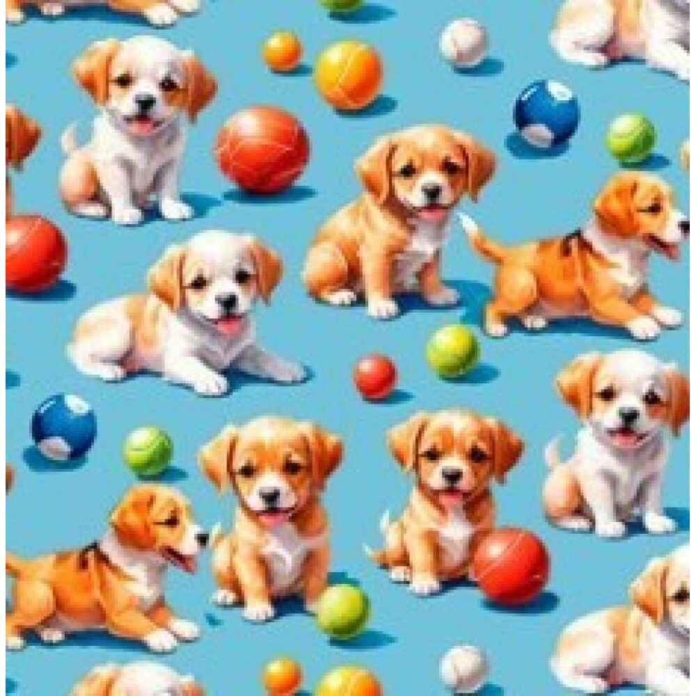 OT25 - TRICOL. COLEÇÃO DOGS - CACHORROS E BOLAS - 100% ALGODAO - 01039/001