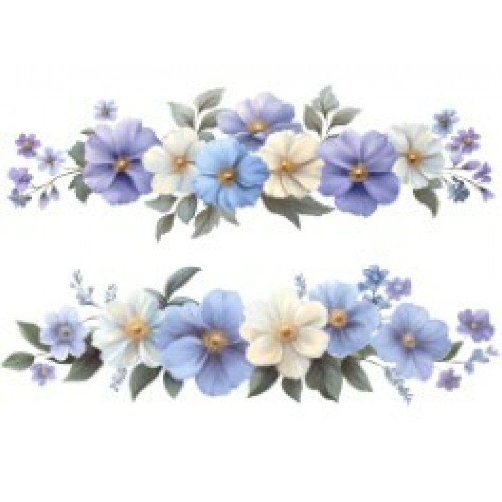 TRANSFER TEXTIL PASSE E CRIE - BARRADO DE FLORES AZUIS E BRANCAS