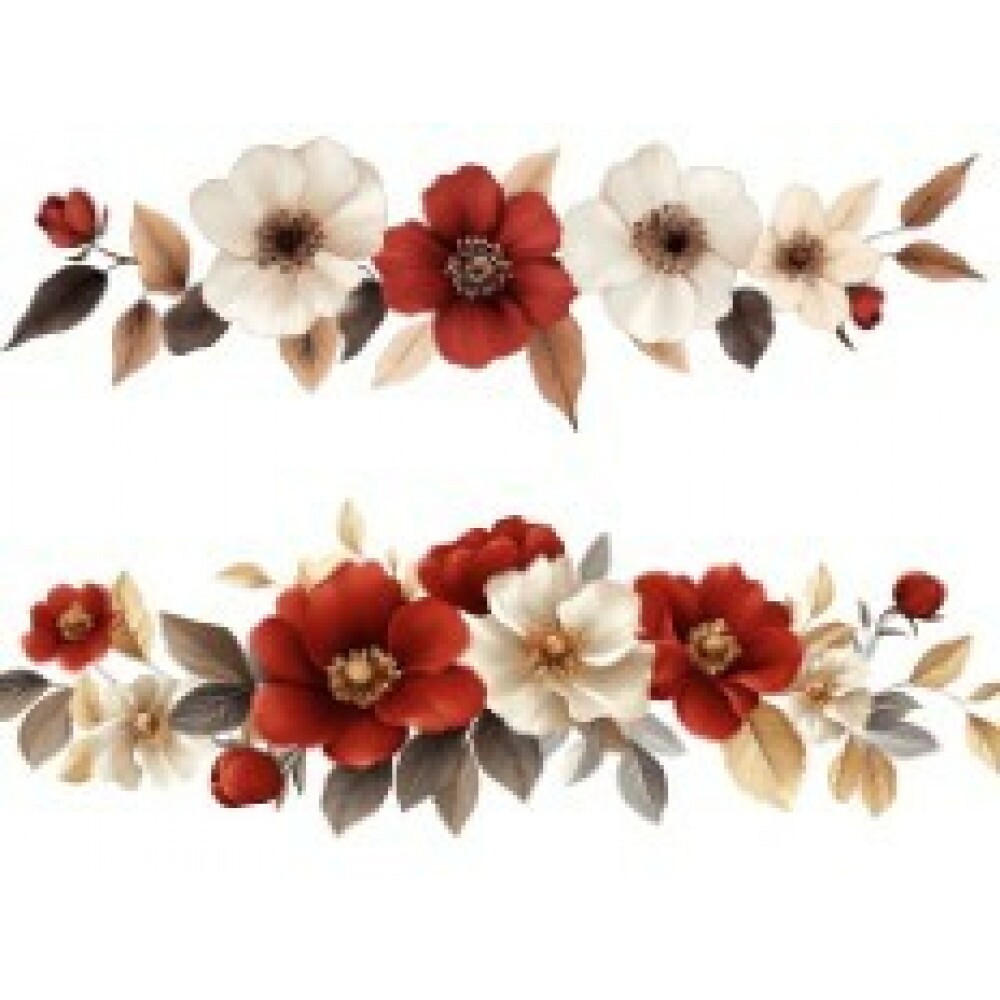 TRANSFER TEXTIL PASSE E CRIE - BARRADO DE FLORES VERMELHAS E BRANCAS