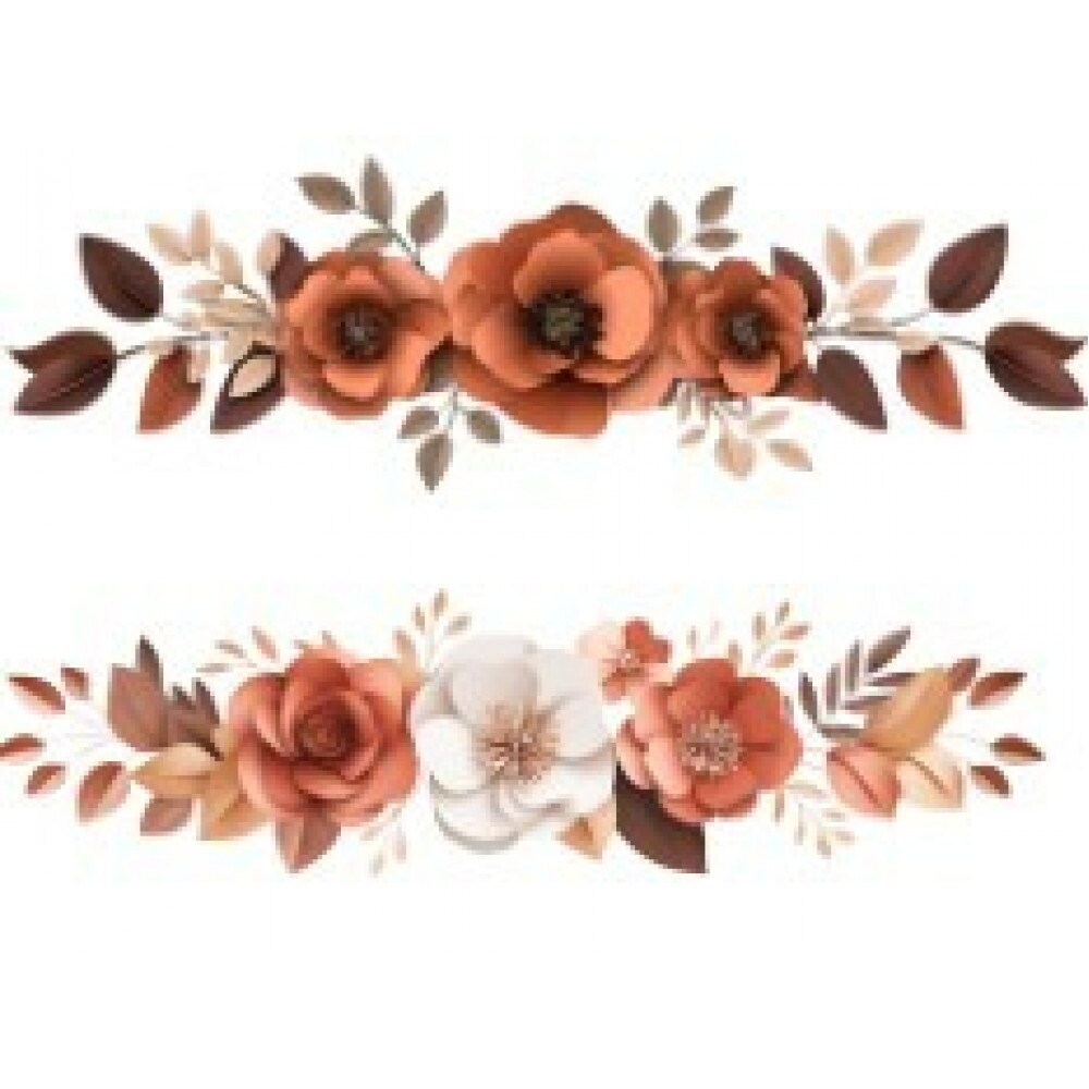 TRANSFER TEXTIL PASSE E CRIE - BARRADO DE FLORES TERRACOTA E BRANCAS II