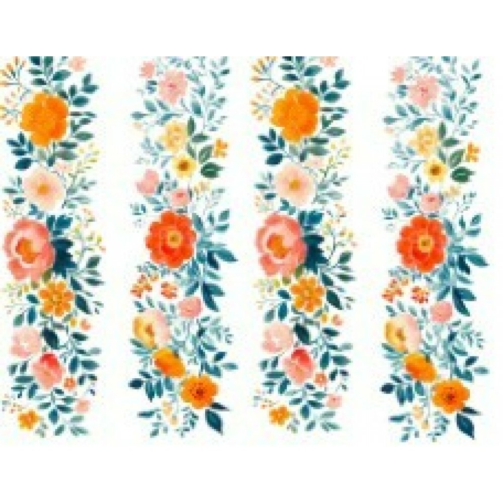 TRANSFER TEXTIL PASSE E CRIE - 4 BARRADOS NA HORIZONTAL FLORES LILAS